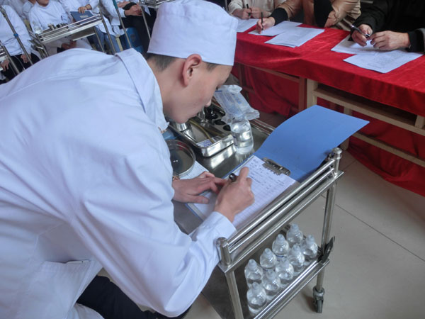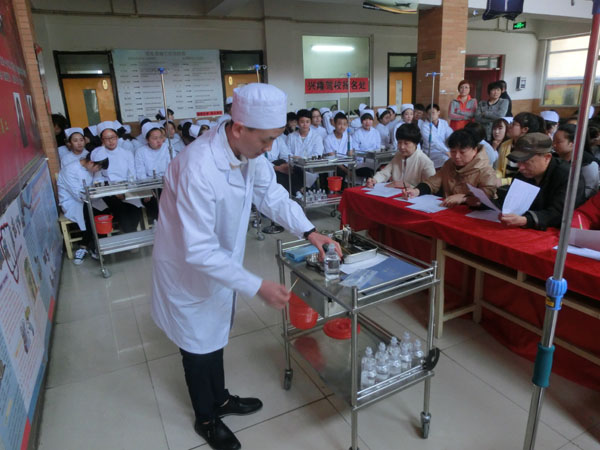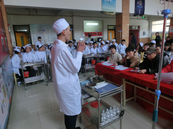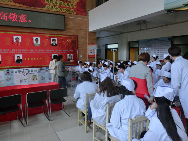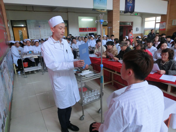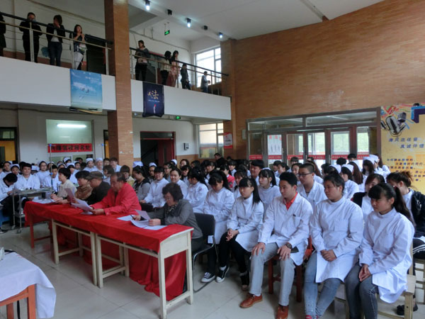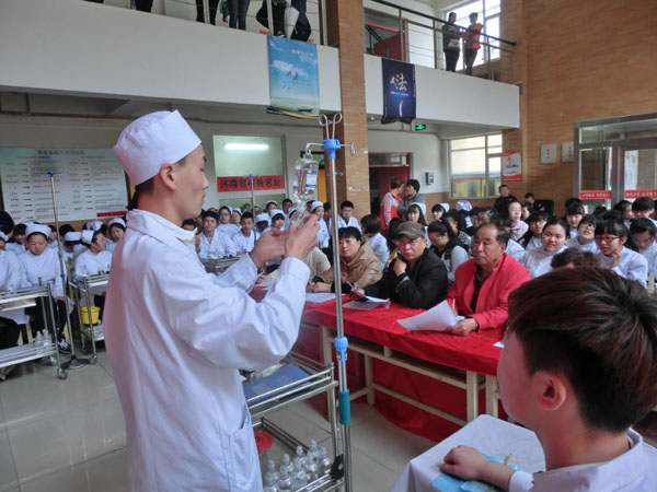 為(wèi)迎接一(yī)年(nián)一(yī)度的(de)®₩✘5.12護士節,5月(yuè)12日(rì)下(xià)午13點30分(f✔☆ēn),在學校(xiào)教學樓二樓大(dà)廳,學校(xiào)組織了(le₽$₽)一(yī)場(chǎng)護理(lǐ)專業(yè)技(jì)能(nénβΩφg)大(dà)賽。這(zhè)次技(jì)能(néng)大(dà)賽ε$的(de)總負責人(rén)是(shì)護理(l δ♠←ǐ)系主任闫玉芹老(lǎo)師(shī)和(hé)護σ✘♠♠理(lǐ)系講師(shī)帶頭人(rén)尤桂鳳老(lφ₹ǎo)師(shī)。比賽的(de)內(nèi)容是(s≈ ★hì):靜(jìng)脈注射。參加比賽的(de)人(rén)員§∑'(yuán)是(shì):13屆、14屆護理(lǐ)專業(yè)→♦學生(shēng)。每班選出5對(duì)同學(注射者和(hé)被注射✔↓者)其他(tā)學生(shēng)是(shì)現(xiàn)場(chǎng)觀衆。評委老(lǎo)師(shī)是(shì)護理α≤(lǐ)講師(shī)尤老(lǎo)師(shī)、督導÷♣✔主任宋老(lǎo)師(shī)、教務處李老(lǎo)師(s£γhī)、朱老(lǎo)師(shī)、舍務主任•✘←姜主任。評比設立一(yī)等獎、二等獎、三等獎,獲勝的β₹∞(de)同學可(kě)以獲得(de)獎品。
