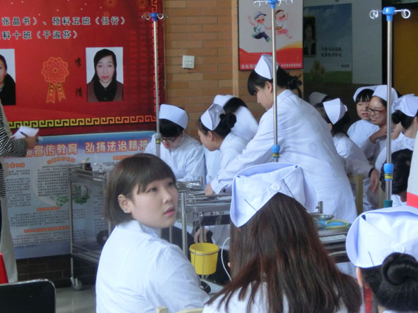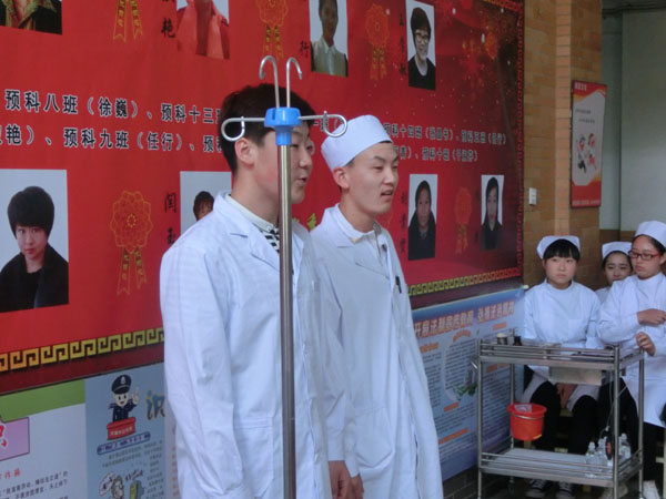 為(wèi)迎接一(yī)年(nián)一(yī)度的(de)®₩✘5.12護士節,5月(yuè)12日(rì)下(xià)午13點30分(f✔☆ēn),在學校(xiào)教學樓二樓大(dà)廳,學校(xiào)組織了(le₽$₽)一(yī)場(chǎng)護理(lǐ)專業(yè)技(jì)能(nénβΩφg)大(dà)賽。這(zhè)次技(jì)能(néng)大(dà)賽ε$的(de)總負責人(rén)是(shì)護理(l δ♠←ǐ)系主任闫玉芹老(lǎo)師(shī)和(hé)護σ✘♠♠理(lǐ)系講師(shī)帶頭人(rén)尤桂鳳老(lφ₹ǎo)師(shī)。比賽的(de)內(nèi)容是(s≈ ★hì):靜(jìng)脈注射。參加比賽的(de)人(rén)員§∑'(yuán)是(shì):13屆、14屆護理(lǐ)專業(yè)→♦學生(shēng)。每班選出5對(duì)同學(注射者和(hé)被注射✔↓者)其他(tā)學生(shēng)是(shì)現(xiàn)場(chǎng)觀衆。評委老(lǎo)師(shī)是(shì)護理α≤(lǐ)講師(shī)尤老(lǎo)師(shī)、督導÷♣✔主任宋老(lǎo)師(shī)、教務處李老(lǎo)師(s£γhī)、朱老(lǎo)師(shī)、舍務主任•✘←姜主任。評比設立一(yī)等獎、二等獎、三等獎,獲勝的β₹∞(de)同學可(kě)以獲得(de)獎品。